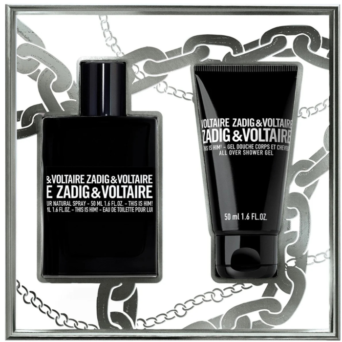Setul conține apa de toaletă This is Him! în flacon de 50 ml și un gel de duș parfumat de 50 ml. Designul flaconului, cu marginile sale ce par sparte/brute, reflectă estetica avangardistă a brandului, simbolizând forța și autenticitatea. Prezentat într-un ambalaj modern, setul este alegerea perfectă pentru bărbatul contemporan sau pentru un cadou cu atitudine.